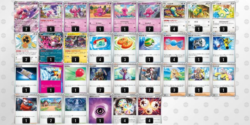 【デカヌチャンex】環境デッキレシピまとめ X LINE 2024.03.112026.01.05 スタートデッキ100環境 1/3【土】ジムバトル優勝 12/28【日】トレカショップVOW(滋賀)TOP16 12/26【金】ジムバトル優勝 12/14【日】竜星の嵐 小倉駅前店(福岡)TOP16 11/23【日】ジムバトル優勝 11/18【火】ジムバトル優勝 11/16【日】フルコンプ八王子本店(東京)TOP16 11/15【土】トレカショップKCC(埼玉)TOP4 11/12【水】ジムバトル優勝 11/11【火】ジムバトル優勝 11/2【日】BOOKOFF松戸駅東口店(千葉)TOP16 10/27【月】秋葉原チェルモ(東京)TOP8 10/25【土】ジムバトル優勝 10/25【土】ジムバトル優勝 10/24【金】ジムバトル優勝 10/19【日】BOOKOFF イオン橋本(神奈川)TOP16 10/4【土】遊ING浜町店(長崎)TOP4 10/3【金】Card Secret 池袋(東京)TOP4 9/27【土】オレタン福岡天神店(福岡)TOP16 9/23【火】バトスタ長野駅前店(長野)TOP16 9/21【日】ジムバトル優勝 9/18【木】ジムバトル優勝 9/15【月】ジムバトル優勝 9/14【日】【CARDBOX】津店(三重)TOP16 9/9【火】スキップ玉出店(大阪)TOP8 9/7【日】ジムバトル優勝 9/7【日】ジムバトル優勝 9/6【土】バトロコ 吉祥寺駅前(東京)TOP8 9/5【金】ジムバトル優勝 8/31【日】ジムバトル優勝 8/30【土】ジムバトル優勝 8/24【日】ジムバトル優勝 8/22【金】ジムバトル優勝 8/17【日】ジムバトル優勝 8/13【水】ジムバトル優勝 8/10【日】ジムバトル優勝 8/6【水】ジムバトル優勝 8/1【金】ジムバトル優勝 7/22【火】ジムバトル優勝 7/15【火】ジムバトル優勝 7/9【水】ジムバトル優勝 7/6【日】ジムバトル優勝 6/16【月】ジムバトル優勝 6/15【日】ジムバトル優勝 6/14【土】ジムバトル優勝【トウコ→リッチエネルギー+ノココッチループ】 6/1【日】ジムバトル優勝 5/9【金】ジムバトル優勝 4/29【火】京都ファミリー(京都)TOP8 4/12【土】バトロコ 藤沢駅北口(神奈川)TOP16 3/29【土】ジムバトル優勝 3/9【日】ブックオフ港北綱島西店(神奈川)TOP8 2/19【水】ジムバトル優勝 2/11【火】ジムバトル優勝 2/9【日】ジムバトル優勝 2/9【日】ビデオ100(徳島)TOP16 2/2【日】ジムバトル優勝 レギュレーション変更前 1/12【日】ファンクス(愛媛)TOP8 1/4【土】ジムバトル優勝 12/22【日】チャンピオンズリーグ2025大阪 TOP8【ジュニアリーグ】 12/8【日】ジムバトル優勝 12/1【日】ジムバトル優勝 11/22【金】ジムバトル優勝 11/19【火】ジムバトル優勝 11/2【土】ジムバトル優勝 10/27【日】カードキングダム(山口)TOP8 9/29【日】ジムバトル優勝 9/28【土】ジムバトル優勝 9/23【月】ジムバトル優勝 9/12【木】ジムバトル優勝 8/16【金】ジムバトル優勝 8/12【月】ジムバトル優勝 8/11【日】ジムバトル優勝 8/10【土】ジムバトル優勝 7/21【日】ジムバトル優勝 7/15【月】ジムバトル優勝 7/14【日】ジムバトル優勝 6/15【土】ジムバトル優勝 5/24【金】ジムバトル優勝 4/22【月】ジムバトル優勝 4/9【火】ジムバトル優勝 4/7【日】フルコンプ八王子本店(東京)TOP16 4/5【金】ジムバトル優勝
