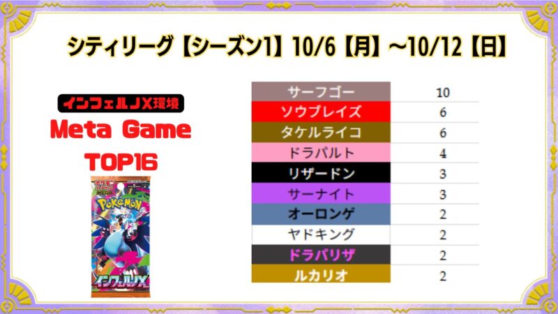 シティリーグ10/6【月】~10/10【金】ベスト16デッキまとめ X LINE 2025.10.06 目次 シティリーグ10/6【月】秋葉原チェルモ(東京)竜星の嵐 十三店(大阪)Japan TCG Center(東京)トレカショップVOW(滋賀)シティリーグ10/7【火】バトロコ 柏駅前(千葉)竜のしっぽ 布施店(大阪)Card Secret 池袋(東京)シティリーグ10/8【水】ドラゴンスター日本橋2号店(大阪)BOOKOFF 307号枚方池之宮店(大阪)シティリーグ10/9【木】ドラゴンスター日本橋3号店(大阪)青馬堂矢向店(神奈川)ドラゴンスター池袋店(東京)トレカショップVOW(滋賀)シティリーグ10/10【金】バトロコ 高田馬場(東京) シティリーグ10/6【月】 秋葉原チェルモ(東京) 大会結果 優勝 準優勝 TOP4 TOP4 TOP8 TOP8 TOP8 TOP8 TOP16 TOP16 TOP16 TOP16 TOP16 TOP16 TOP16 TOP16 竜星の嵐 十三店(大阪) 大会結果 優勝 準優勝 TOP4 TOP4 TOP8 TOP8 TOP8 TOP8 TOP16 TOP16 TOP16 TOP16 TOP16 TOP16 TOP16 TOP16 Japan TCG Center(東京) 大会結果 優勝 準優勝 TOP4 TOP4 TOP8 TOP8 TOP8 TOP8 TOP16 TOP16 TOP16 TOP16 TOP16 TOP16 TOP16 TOP16 トレカショップVOW(滋賀) 大会結果 優勝 準優勝 TOP4 TOP4 TOP8 TOP8 TOP8 TOP8 TOP16 TOP16 TOP16 TOP16 TOP16 TOP16 TOP16 TOP16 シティリーグ10/7【火】 バトロコ 柏駅前(千葉) 竜のしっぽ 布施店(大阪) Card Secret 池袋(東京) シティリーグ10/8【水】 ドラゴンスター日本橋2号店(大阪) BOOKOFF 307号枚方池之宮店(大阪) シティリーグ10/9【木】 ドラゴンスター日本橋3号店(大阪) 青馬堂矢向店(神奈川) ドラゴンスター池袋店(東京) トレカショップVOW(滋賀) シティリーグ10/10【金】 バトロコ 高田馬場(東京)