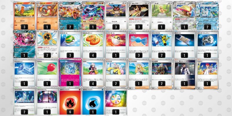 インフェルノX収録「ヒカリ」を最も強く使えるデッキと言っても過言ではない。ヒトカゲとホーホーが場にいる状態で、ヒカリを使用→水オーガポン、ヨルノズク、リザードンexをサーチ。ヨルノズクの【ほうせきさがし】を使い、「きらめく結晶」と「ふしぎなアメ」をサーチすれば、いきなり水オーガポンexの『げきりゅうポンプ』が使える。その後も「アカマツ」で連打もできるため、イージーウィンの再現性が高い。
