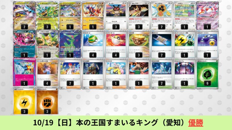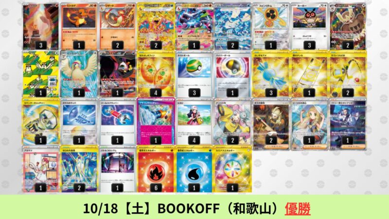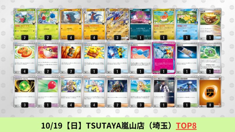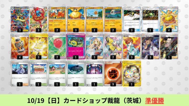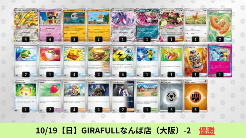 新弾のファイヤー登場によって一時はシェア率を落としたものの、サーフゴーに対して先攻2ターン目からジャッジマンを打ち込むことで押し切る展開を作りやすいなどの良い立ち回りの話もあり、環境的に再び立ち位置を取り戻した印象。