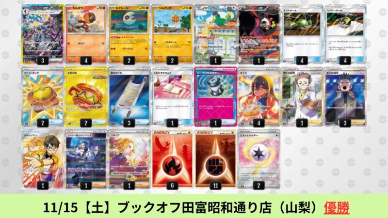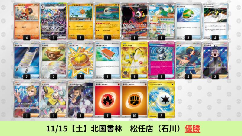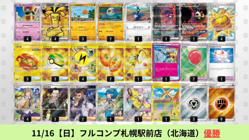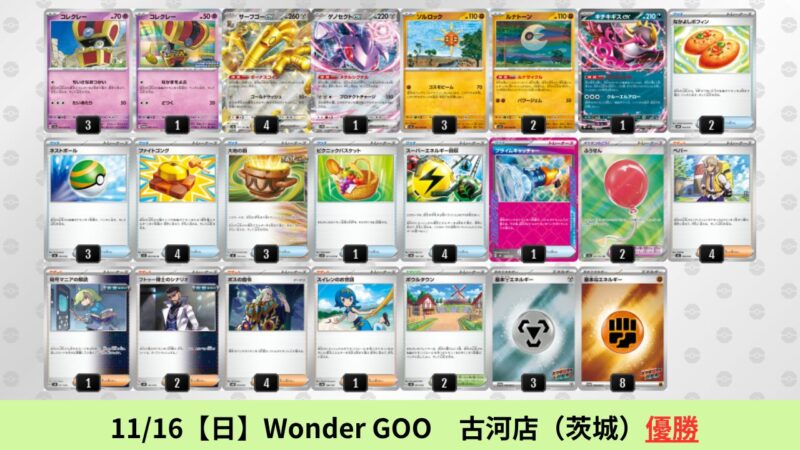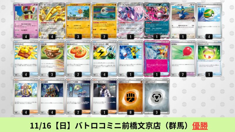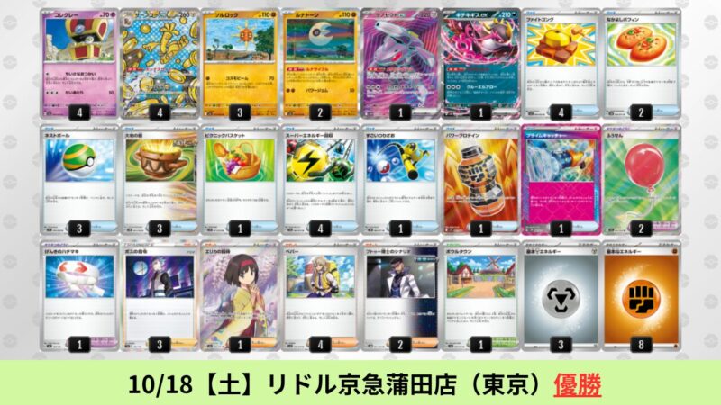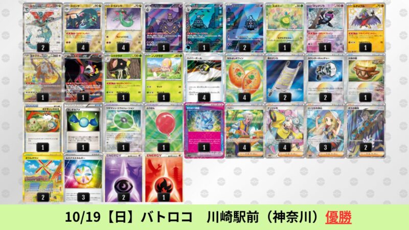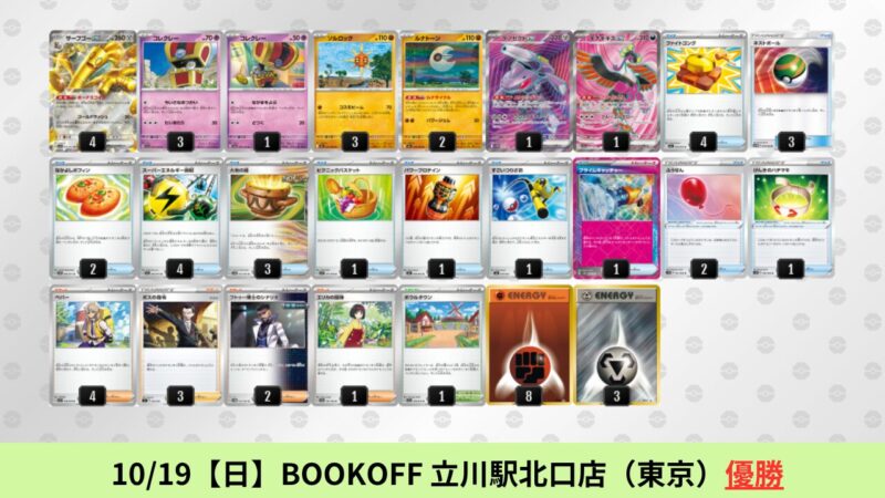 CL横浜の週から急激にシェアを伸ばしてきた。サーフゴーにはタイプ相性で有利を取り、2進化相手には展開速度で有利を取る。ソルロック+ルナトーンのギミックとの相性が良く、デッキの安定感が大幅に向上した。