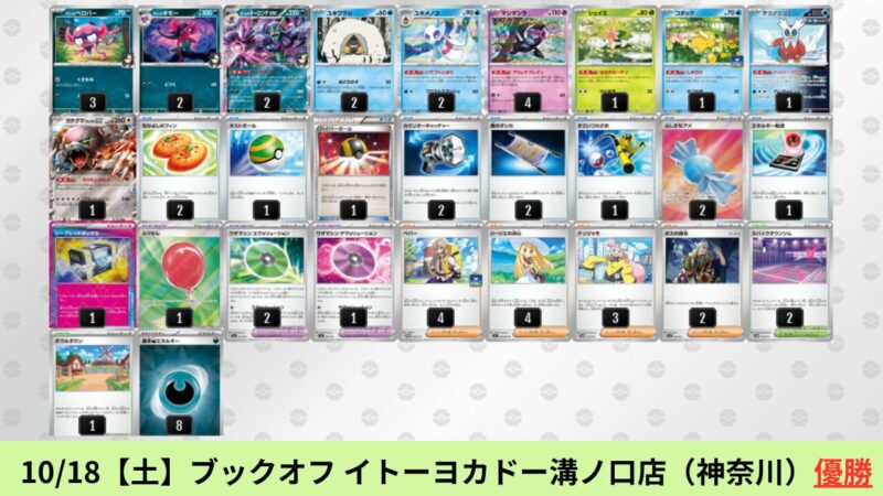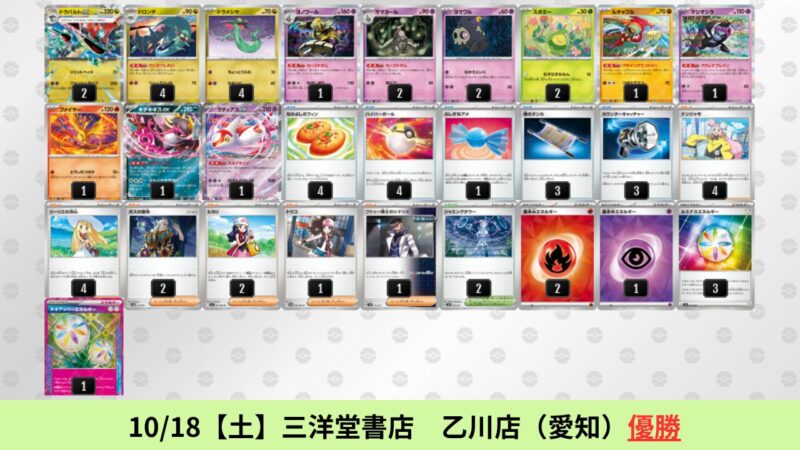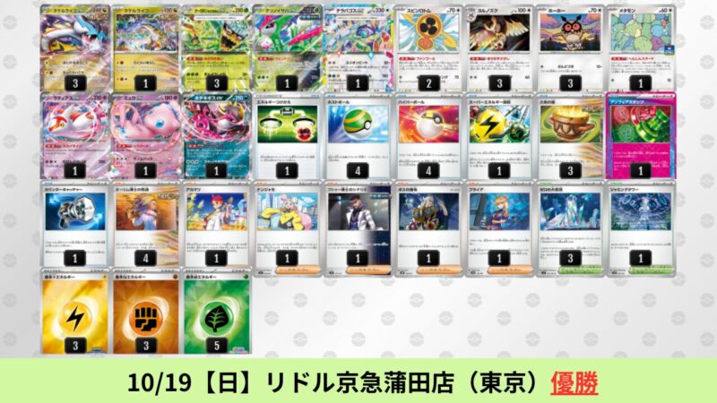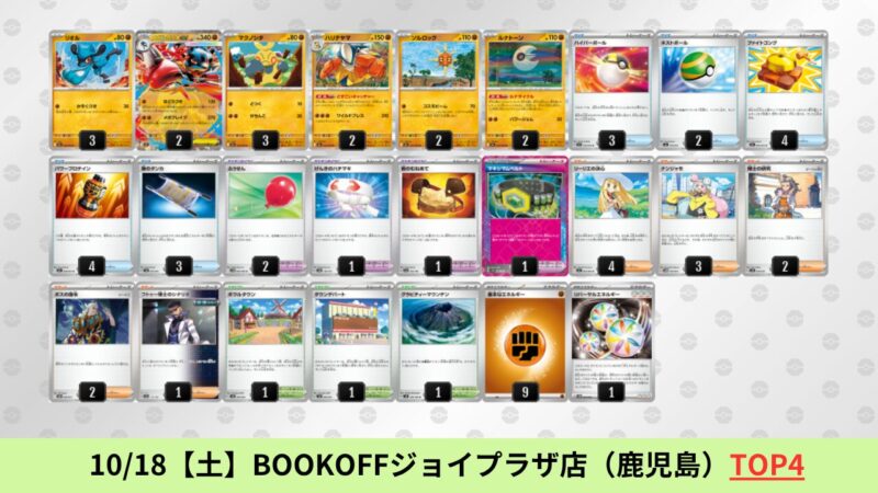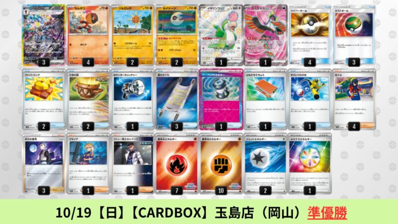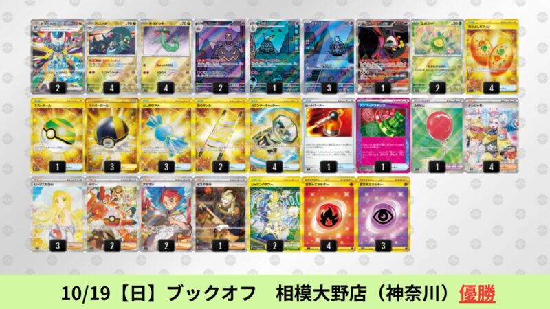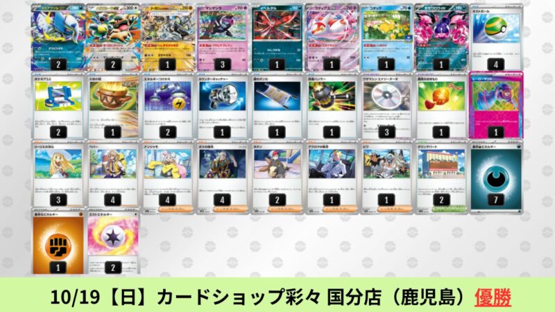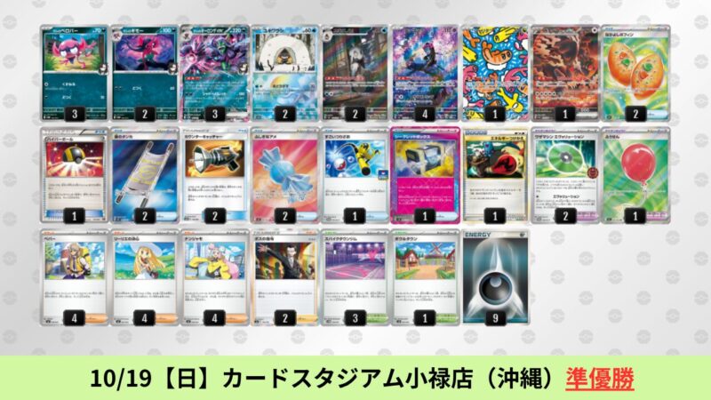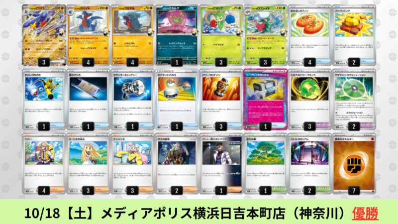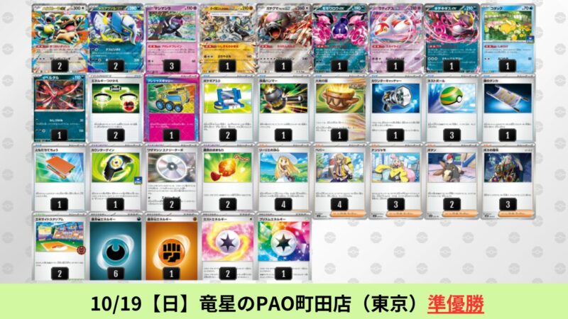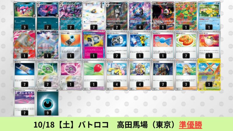 また、本来おまもりプルリルや岩ポン対策目的で採用したメガミミロップexだったが、フトゥー博士のシナリオやプライムキャッチャーとの相性が抜群ということもあり、単体で使っても強く、むしろこの逆境を経て強化された感すらある。
