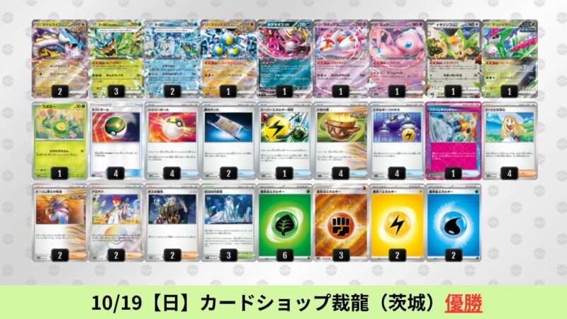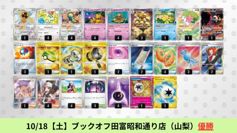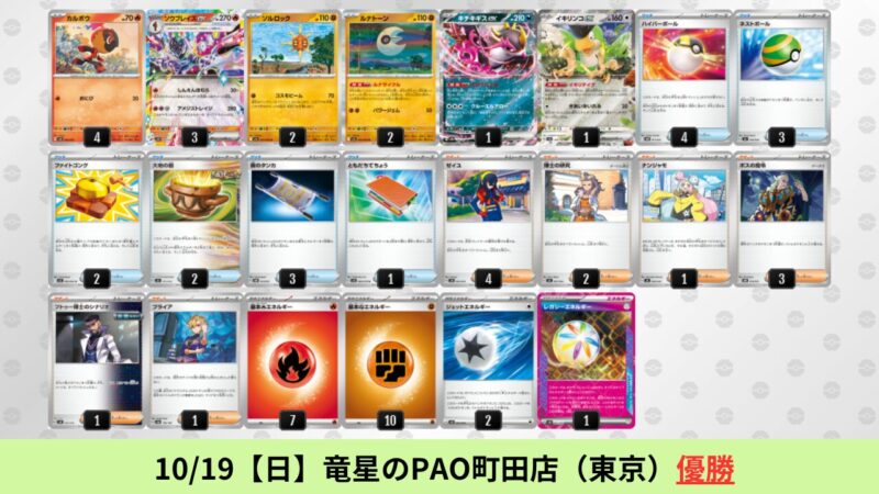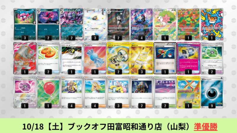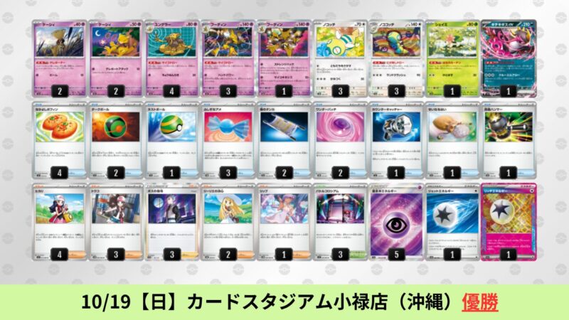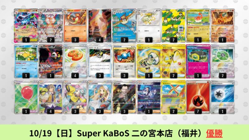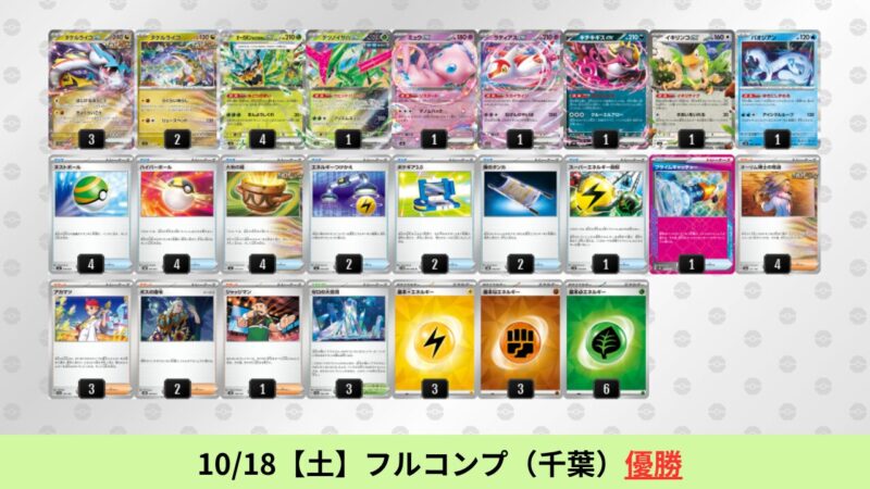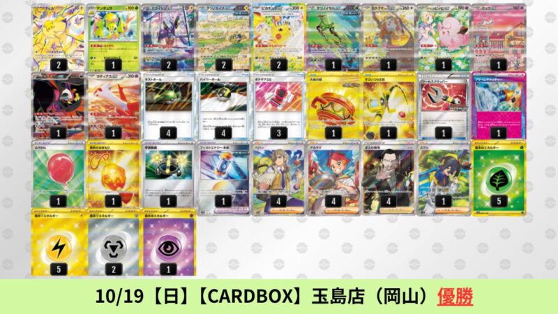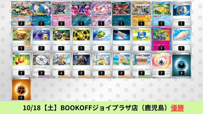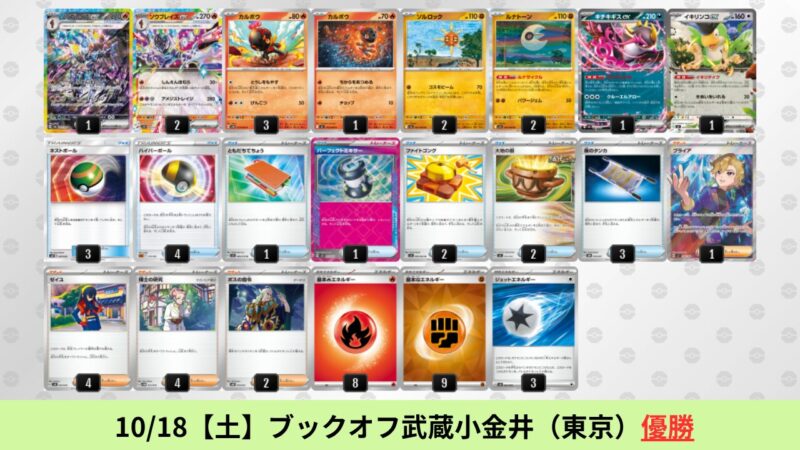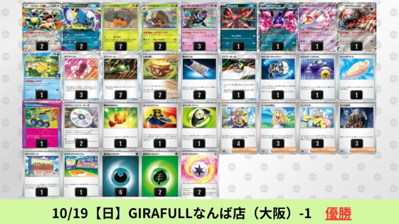 また、本来おまもりプルリルや岩ポン対策目的で採用したメガミミロップexだったが、フトゥー博士のシナリオやプライムキャッチャーとの相性が抜群ということもあり、単体で使っても強く、むしろこの逆境を経て強化された感すらある。
