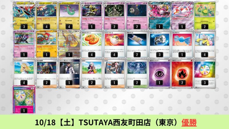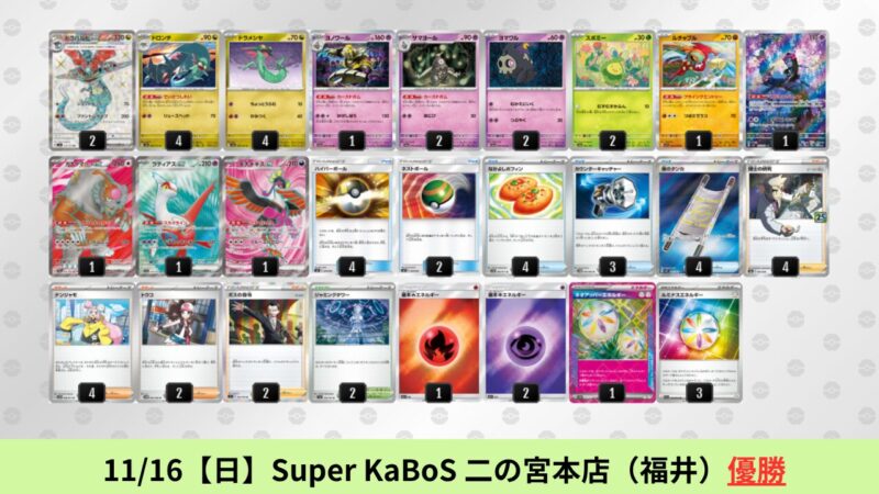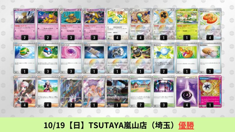 ドロンチの特性【ていさつしれい】による中盤以降の安定感と、ワザ『ファントムダイブ』の高いパフォーマンスが支持を集めているデッキ。