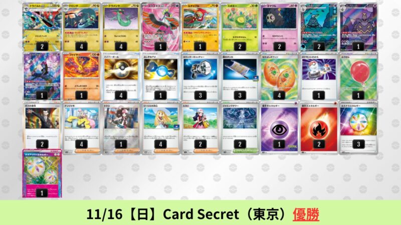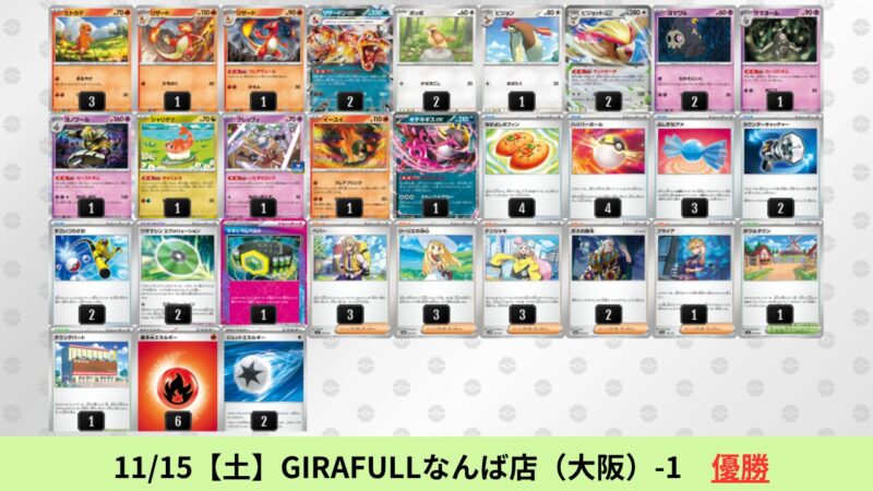 リザードン大増加を契機にシェア率を伸ばし、大車輪の活躍を見せた。しかしリザードンの数があまりに多く、食いきれなかった印象。