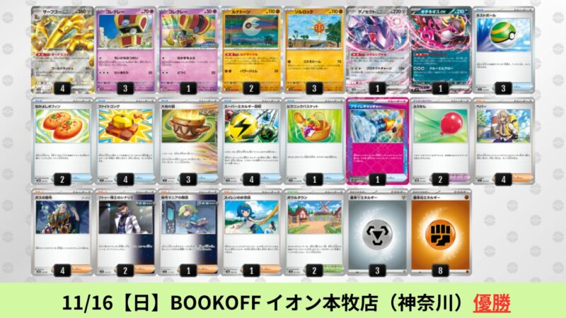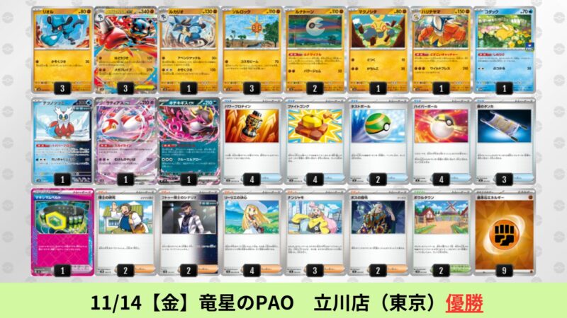 サーフゴーやタケルライコを厚く見たければ非ルールビート、2進化を重く見たければメガルカリオ+フトゥー厚め。リバーサルや、ルカリオex等の枚数を1~2枚いじるだけだが、この微調整の加減にセンスが光り、意思が宿る。