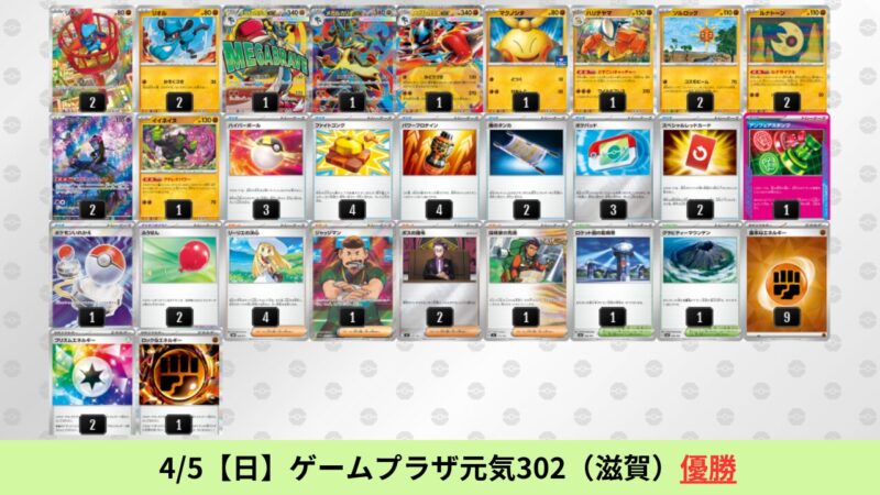 ゲッコウガ:メガゲッコウガexよりも闘ゲッコウガex主体のデッキの方が活躍しており、闘ゲッコウガexのおまけでメガゲッコウガex採用というデッキタイプが多い。