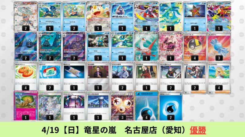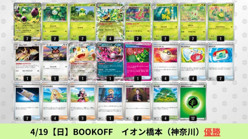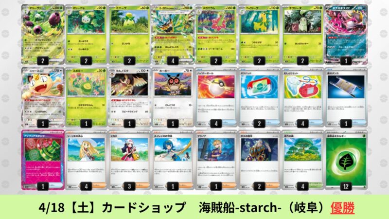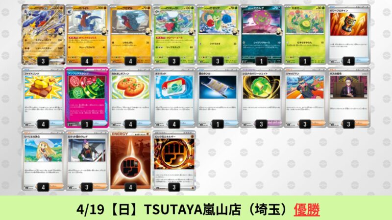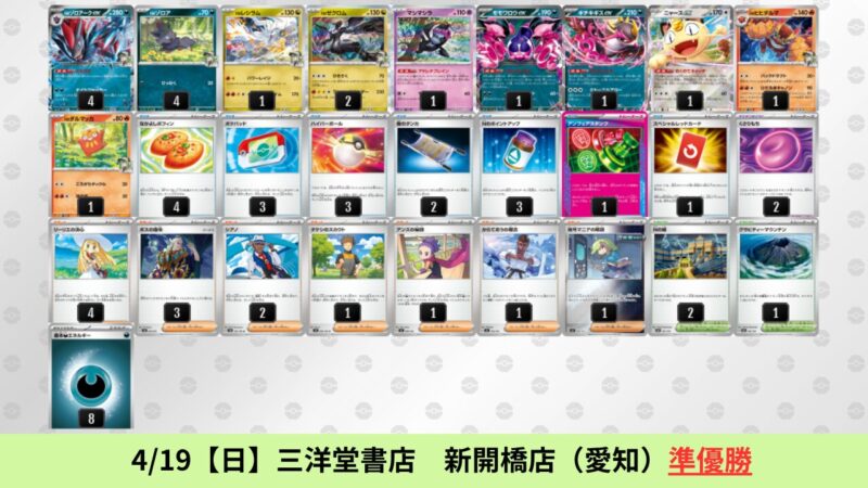 オリーヴァ:海外環境ではドラパルトを抜いた勝率1位のデッキ。SNSで活発に議論されており、4/24【金】現在最もアツいデッキとして注目されている。