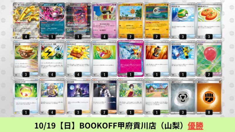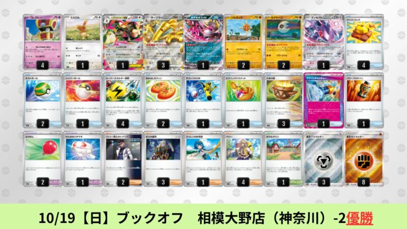 サーフゴー:アブソルやサーナイト等、散々メタの話題が上がったにも関わらず首位独走。岩オーガポンや増加傾向のイワパレスを突破するためにメガミミロップ採用デッキ登場。当初は岩ポンやイワパレス突破目的で採用されていたメガミミロップだが、フトゥーやプライムとの相性が抜群で、適当に投げてもかなり強い。逆境を乗り越えてデッキレシピは一つ上のステージへ昇華。
