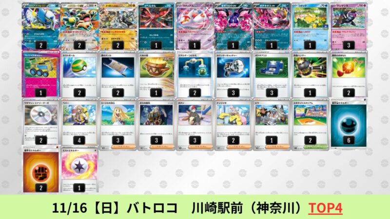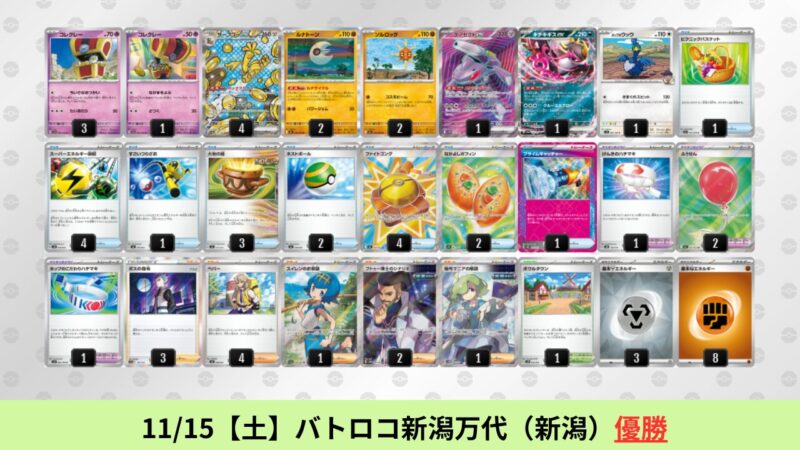 サーフゴーやソウブレイズに対してもピカチュウexが強力で、理論上すべてのデッキに対して有効な手段を持つ。しかし、中盤以降の手札干渉への脆弱性は改善されておらず、すべてに勝てる代わりに、簡単に捲られてしまうのが欠点。