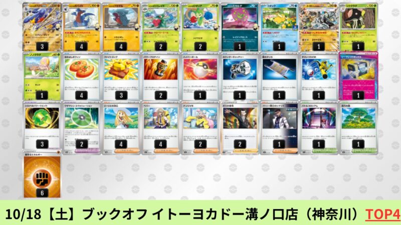 Tier2帯とTier3帯の使用率には大きな隔たりがあり、ドラパルト、サーフゴー、サーナイト、リザードン、オーロンゲ、タケルライコ、ソウブレイズの上位の7デッキ(SNS上では『BIG6』『BIG7』と呼ばれる)がループするという構図は以前と変わっていない。