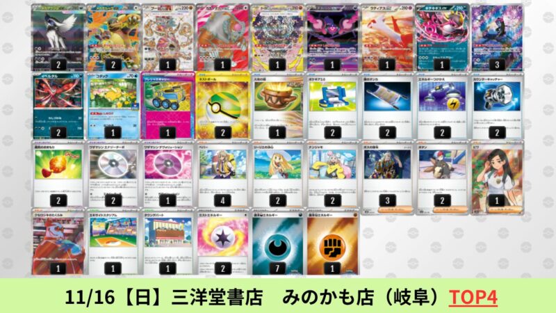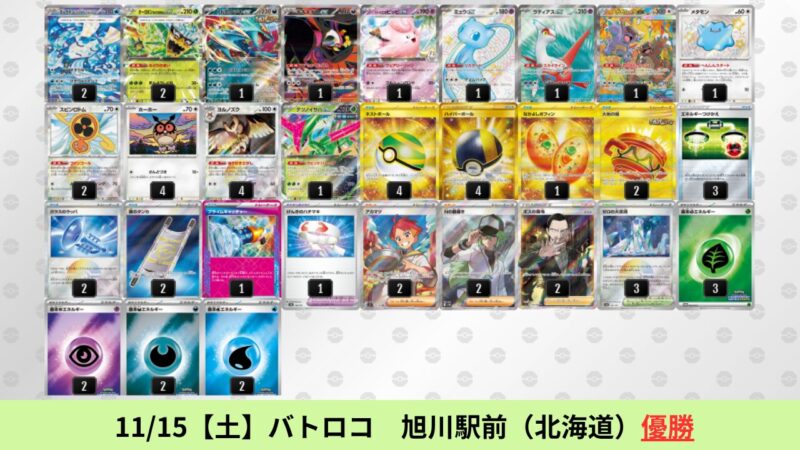 オーロンゲ:シェア率維持、勝率好調。オーロンゲへのガードが下がってきたタイミング。メタカードを抜いて純粋な回転力で勝負する構築がトレンド。