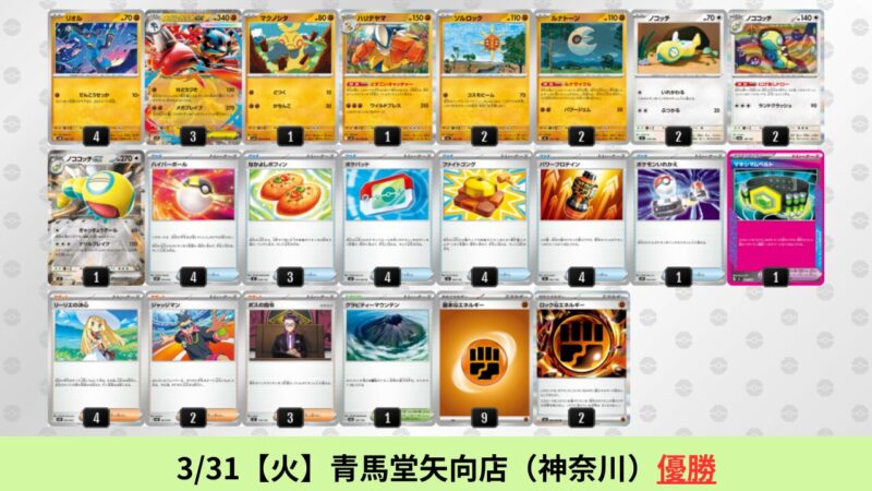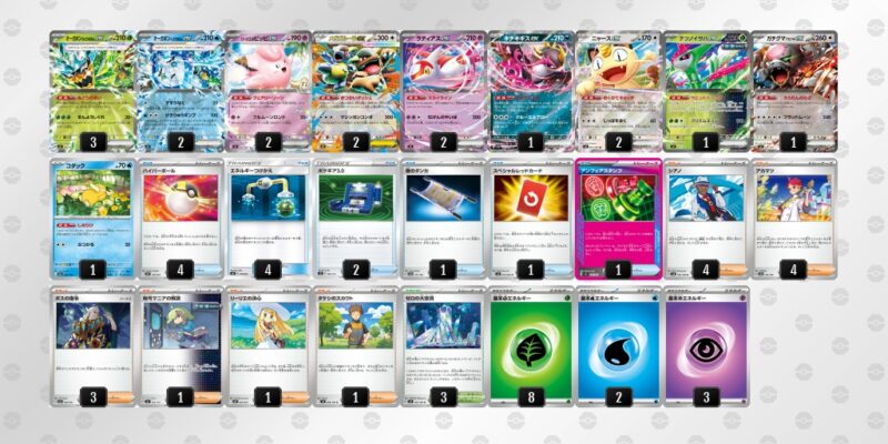 ドラパルト:チャンピオンズリーグでは実力を発揮できなかったが、シティリーグでは引き続きシェア率1位を維持。新たにノココッチ型が登場した。ノココッチによるドローに加え、ノココッチexによってイワパレスやタケルライコなどのたねポケモンexへのアプローチを獲得した。