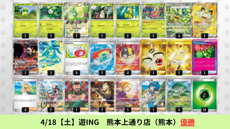 ロケット団:シェア率維持。オリーヴァ戦は先攻後攻で相性が大きく変わる。後攻であれば『オイルマシンガン』でタマンチュラを2面取りされるため不利。