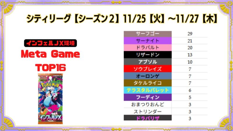 シティリーグ11/25【火】~11/28【金】ベスト16デッキまとめ X LINE 2025.11.252025.11.28 目次 シティリーグ11/25【火】Torecacamp大須店(愛知)バトロコ 柏駅前(千葉)シティリーグ11/26【水】シーガル郡山店(福島)ブックオフ佐賀南部バイパス店(佐賀)BOOKOFF 1号京都伏見店(京都)ドラゴンスター日本橋2号店(大阪)シティリーグ11/27【木】ドラゴンスター日本橋3号店(大阪)青馬堂矢向店(神奈川)TSUTAYA嵐山店(埼玉)ドラゴンスター池袋店(東京)シティリーグ11/28【金】バトロコ 高田馬場(東京) シティリーグ11/25【火】 Torecacamp大須店(愛知) 大会結果 優勝 準優勝 TOP4 TOP4 TOP8 TOP8 TOP8 TOP8 TOP16 TOP16 TOP16 TOP16 TOP16 TOP16 TOP16 TOP16 バトロコ 柏駅前(千葉) 大会結果 優勝 準優勝 TOP4 TOP4 TOP8 TOP8 TOP8 TOP8 TOP16 TOP16 TOP16 TOP16 TOP16 TOP16 TOP16 TOP16 シティリーグ11/26【水】 シーガル郡山店(福島) 大会結果 優勝 準優勝 TOP4 TOP4 TOP8 TOP8 TOP8 TOP8 TOP16 TOP16 TOP16 TOP16 TOP16 TOP16 TOP16 TOP16 ブックオフ佐賀南部バイパス店(佐賀) 大会結果 優勝 準優勝 TOP4 TOP4 TOP8 TOP8 TOP8 TOP8 TOP16 TOP16 TOP16 TOP16 TOP16 TOP16 TOP16 TOP16 BOOKOFF 1号京都伏見店(京都) 大会結果 優勝 準優勝 TOP4 TOP4 TOP8 TOP8 TOP8 TOP8 TOP16 TOP16 TOP16 TOP16 TOP16 TOP16 TOP16 TOP16 ドラゴンスター日本橋2号店(大阪) 大会結果 優勝 準優勝 TOP4 TOP4 TOP8 TOP8 TOP8 TOP8 TOP16 TOP16 TOP16 TOP16 TOP16 TOP16 TOP16 TOP16 シティリーグ11/27【木】 ドラゴンスター日本橋3号店(大阪) 大会結果 優勝 準優勝 TOP4 TOP4 TOP8 TOP8 TOP8 TOP8 TOP16 TOP16 TOP16 TOP16 TOP16 TOP16 TOP16 TOP16 青馬堂矢向店(神奈川) 大会結果 優勝 準優勝 TOP4 TOP4 TOP8 TOP8 TOP8 TOP8 TOP16 TOP16 TOP16 TOP16 TOP16 TOP16 TOP16 TOP16 TSUTAYA嵐山店(埼玉) 大会結果 優勝 準優勝 TOP4 TOP4 TOP8 TOP8 TOP8 TOP8 TOP16 TOP16 TOP16 TOP16 TOP16 TOP16 TOP16 TOP16 ドラゴンスター池袋店(東京) 大会結果 優勝 準優勝 TOP4 TOP4 TOP8 TOP8 TOP8 TOP8 TOP16 TOP16 TOP16 TOP16 TOP16 TOP16 TOP16 TOP16 シティリーグ11/28【金】 バトロコ 高田馬場(東京) 大会結果 優勝 準優勝 TOP4 TOP4 TOP8 TOP8 TOP8 TOP8 TOP16 TOP16 TOP16 TOP16 TOP16 TOP16 TOP16 TOP16