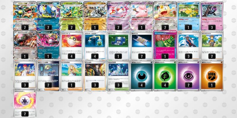 【2/23(月)~3/1(日)】ジムバトル優勝デッキまとめ【ムニキスゼロ環境】 X LINE 2026.02.23 目次 2/23【月】優勝デッキメガユキノオーexメタングバレットメガアブソルexオリーヴァexゲッコウガexゲッコウガexヤドキングメガサメハダーexイイネイヌイイネイヌダイゴのメタグロスexダイゴのメタグロスexダイゴのメタグロスexダイゴのメタグロスexテラスタルバレット 2/23【月】優勝デッキ メガユキノオーex 2/23【月】ジムバトル優勝 メタングバレット 2/23【月】ジムバトル優勝 メガアブソルex 2/23【月】ジムバトル優勝 オリーヴァex 2/23【月】ジムバトル優勝 ゲッコウガex 2/23【月】ジムバトル優勝 ゲッコウガex 2/23【月】ジムバトル優勝 ヤドキング 2/23【月】ジムバトル優勝 メガサメハダーex 2/23【月】ジムバトル優勝 イイネイヌ 2/23【月】ジムバトル優勝 イイネイヌ 2/23【月】ジムバトル優勝 ダイゴのメタグロスex 2/23【月】ジムバトル優勝 ダイゴのメタグロスex 2/23【月】ジムバトル優勝 ダイゴのメタグロスex 2/23【月】ジムバトル優勝 ダイゴのメタグロスex 2/23【月】ジムバトル優勝 テラスタルバレット 2/23【月】ジムバトル優勝