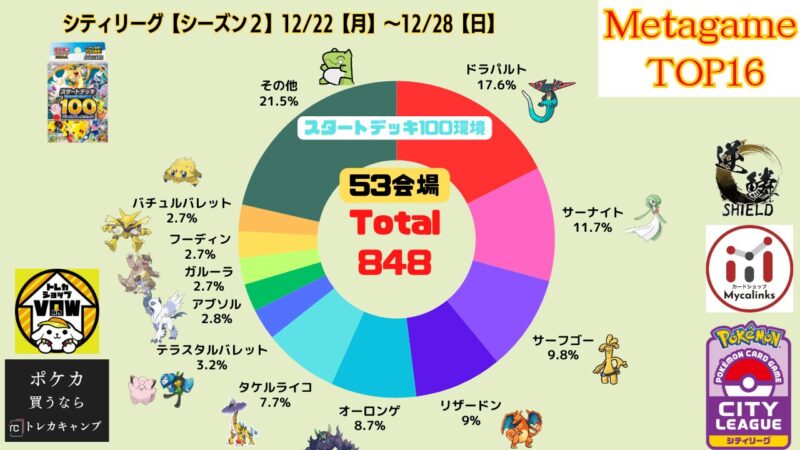 スタートデッキ100収録「ポケパッド」の登場によりドラパルトex増加。そのシェア率の急上昇を受け、リザードン側もドラパルトを明確に意識した構築へとシフトしていく。