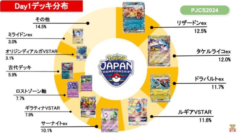 しかし、CL札幌後に「タケルライコ」という超新星が台頭。ドラパルトに有利なデッキとして猛威を振るうが、そのタケルライコはリザードンを苦手としていた。これにより三すくみの関係が生まれ、6月2日【日】開催のPJCSでは、リザードンのシェア率が再び1位へと回帰する。