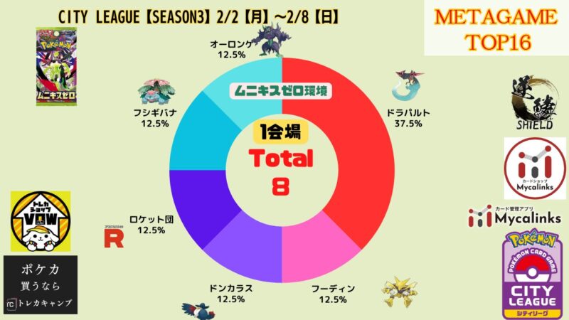 シティリーグ2/2【月】~2/6【金】ベスト16デッキまとめ X LINE 2026.02.02 目次 シティリーグ2/2【月】トレカショップVOW(滋賀)シティリーグ2/3【火】青馬堂矢向店(神奈川)バトロコ 柏駅前(千葉)竜のしっぽ 布施店(大阪)シティリーグ2/4【水】ポケ堂 仙台店(宮城)BOOKOFF 307号枚方池之宮店(大阪)ドラゴンスター日本橋2号店(大阪)Card Secret(東京)シティリーグ2/5【木】秋葉原チェルモ(東京)シティリーグ2/6【金】バトロコ 高田馬場(東京)Card Secret(東京) シティリーグ2/2【月】 トレカショップVOW(滋賀) 大会結果 優勝 準優勝 TOP4 TOP4 TOP8 TOP8 TOP8 TOP8 シティリーグ2/3【火】 青馬堂矢向店(神奈川) バトロコ 柏駅前(千葉) 竜のしっぽ 布施店(大阪) シティリーグ2/4【水】 ポケ堂 仙台店(宮城) BOOKOFF 307号枚方池之宮店(大阪) ドラゴンスター日本橋2号店(大阪) Card Secret(東京) シティリーグ2/5【木】 秋葉原チェルモ(東京) シティリーグ2/6【金】 バトロコ 高田馬場(東京) Card Secret(東京)