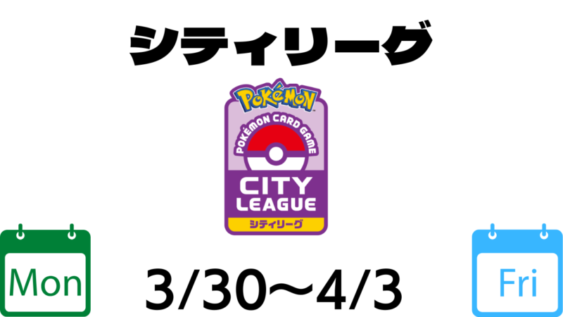 シティリーグ3/30【月】~4/3【金】ベスト16デッキまとめ X LINE 2026.03.30 目次 シティリーグ3/30【月】ドラゴンスター秋葉原駅前店(東京)シティリーグ3/31【火】青馬堂矢向店(神奈川)スキップ玉出店(大阪)シティリーグ4/1【水】ドラゴンスター日本橋2号店(大阪)シティリーグ4/2【木】Torecacamp大須店(愛知)ドラゴンスター町田店(東京)シティリーグ4/3【金】竜星のPAO 大宮店(埼玉)ドラゴンスター池袋店(東京) シティリーグ3/30【月】 ドラゴンスター秋葉原駅前店(東京) シティリーグ3/31【火】 青馬堂矢向店(神奈川) スキップ玉出店(大阪) シティリーグ4/1【水】 ドラゴンスター日本橋2号店(大阪) シティリーグ4/2【木】 Torecacamp大須店(愛知) ドラゴンスター町田店(東京) シティリーグ4/3【金】 竜星のPAO 大宮店(埼玉) ドラゴンスター池袋店(東京)