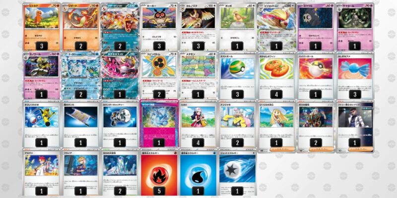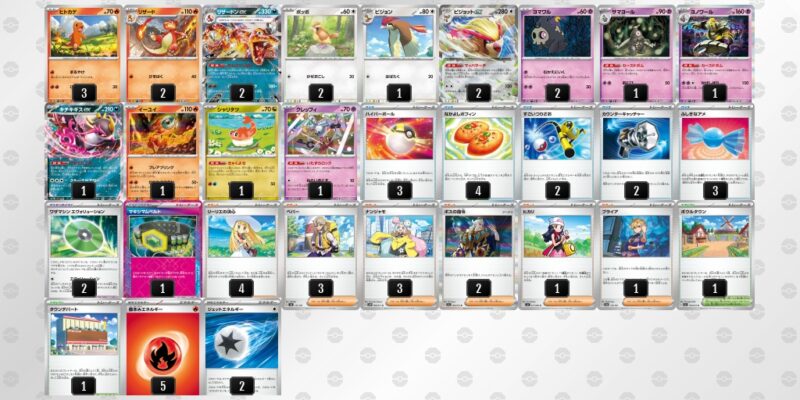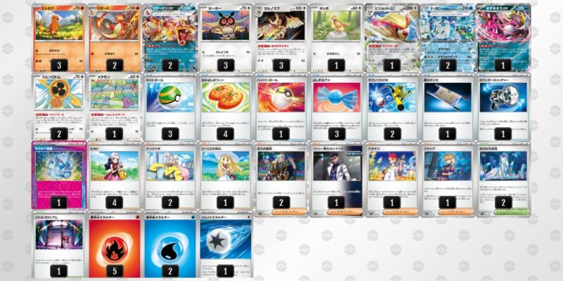 リザードンデッキは個性が出る印象だが、今回の平均化はかなり民意を反映した構築が完成している。ファイヤー、タウンデパートの採用率高め。