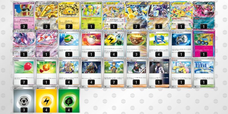 ポケモンの構成はほぼ固定。ボタン、ナンジャモ、ツールスクラッパー、カウンターキャッチャー、ハイパーボール、ハッコウシティ2枚目の中で差し替えが行われている。
