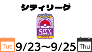 Tournament results シティリーグ9/23【火】~9/25【木】ベスト16デッキまとめ ポケモンカードの大会【シティリーグ】ベスト16デッキまとめを掲載しています。 2025.09.23 Tournament resultsシティリーグ